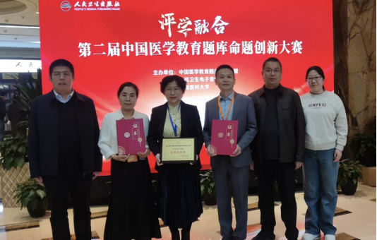 中国医学教育题库命题创新大赛是由中国医学教育题库院校联盟、人民卫生电子音像出版社、中国医科大学联合主办的一项全国性高水平医学教育命题赛事,旨在推动医学教育评价改革,提升教师命题能力与数字素养。第二届中国医学教育题库命题创新大赛于2024年10月启动,经过严格的双盲网络评审,共有来自29个省(自治区、直辖市)的63所院校的100支队伍入围现场评审。学校李帅教师团队和张桥教师团队凭借扎实的专业知识、创新的命题理念以及严谨的教学态度,在现场决赛中分别荣获二等奖和三等奖。