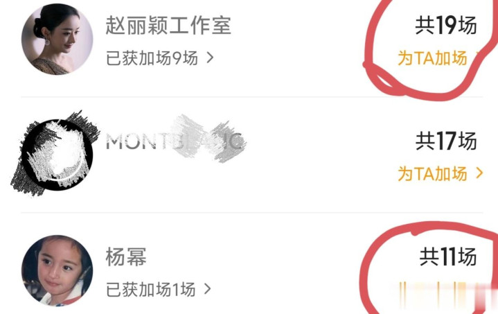 首先,当两人场次一样时,意外发现赵丽颖下面出现了一场加场。