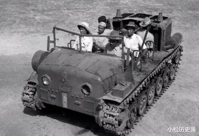 不过,仔细观察一下,我们可以发现,应该类似日军的98式6吨火炮牵引车,其底盘悬挂直接采用的九七式中型坦克。