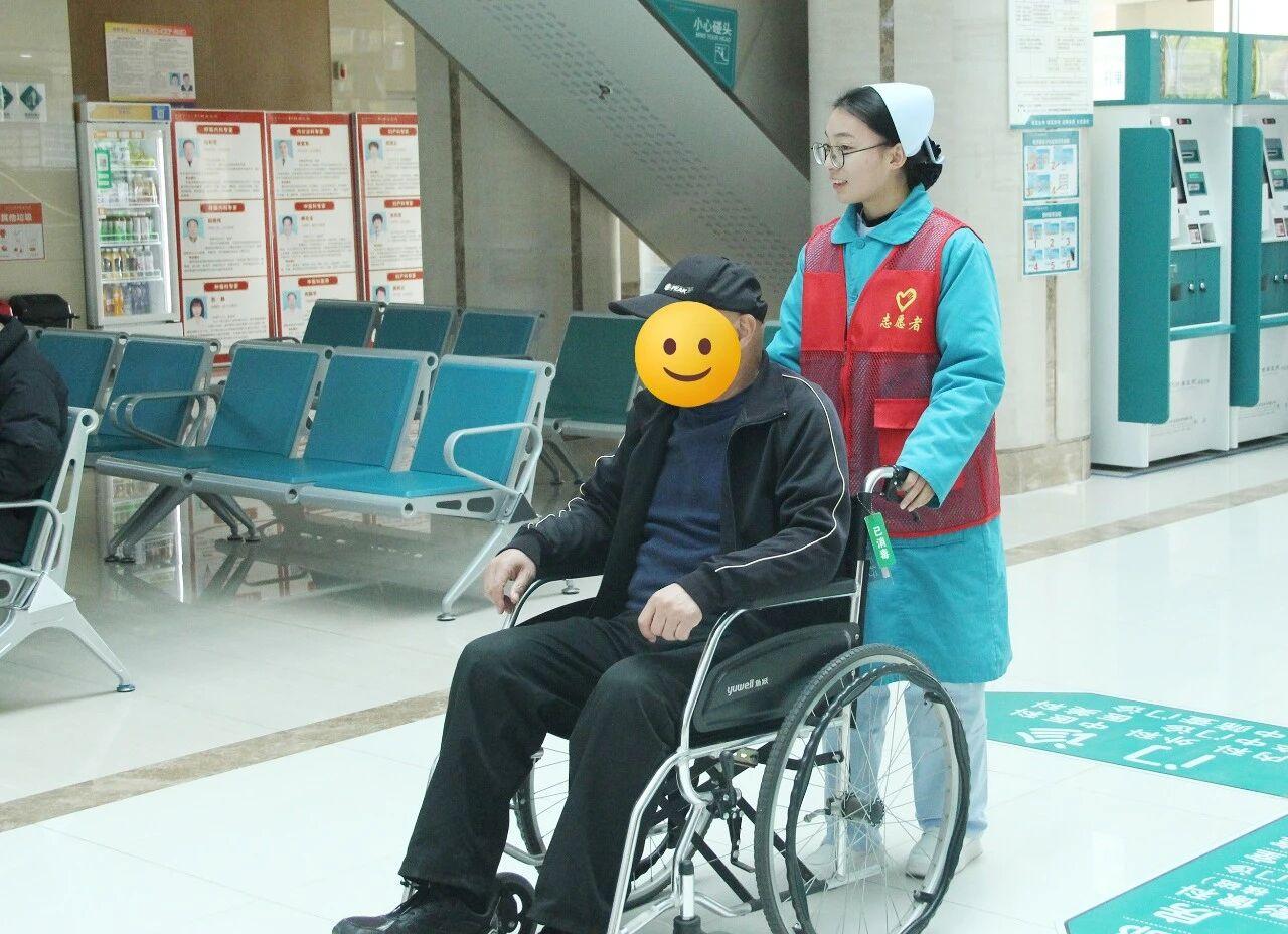 就医流程复杂、科室分布不熟悉,是不少患者尤其是老年患者、外地患者就诊时的“第一道难题”。作为患者与智能设备间的“桥梁”,每当看到有人在大厅里驻足张望、面露难色,红马甲帮帮团总会第一时间上前询问。她们熟练地指引就诊路线,手把手教患者使用自助挂号机、报告打印机,帮行动不便的患者推轮椅、提行李,陪独自就诊的老人完成检查。